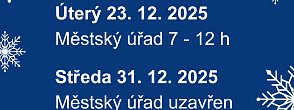 Městský úřad v Litoměřice informuje o změnách v otevírací době mezi vánočními svátky. V úterý 23. 12. bude úřad pro veřejnost otevřen pouze v dopoledních hodinách, konkrétně od 7:00 do 12:00. Ve středu 31. 12. zůstane úřad pro veřejnost uzavřen.